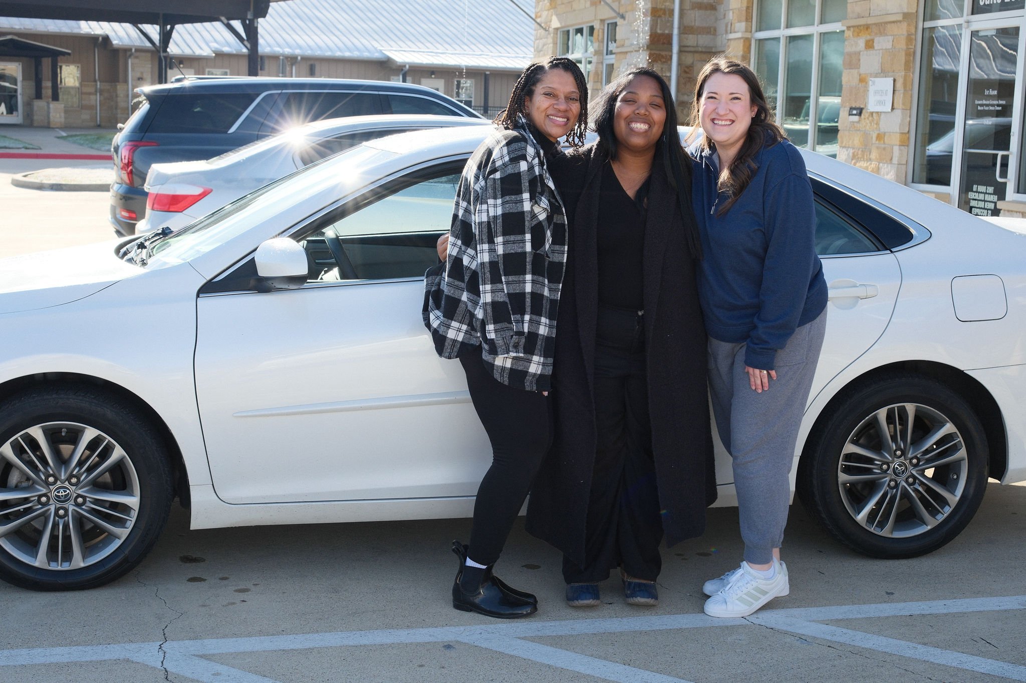 That’s why Taylor’s case manager enthusiastically nominated her to OnRamp. Based on how much she spent on ride-shares, we knew she could afford insurance and fuel for any vehicle we gave her, and still have plenty left over to build her savings and pay down debt. She was an easy “yes”! So on Tuesday of this week we gathered under the sun on a frigid morning to gift her this lovely Toyota Camry. Jessycah Carroll, the director of MCH Bryan joined us to celebrate Taylor. After we prayed for her, she drove off to work to start her shift. But as soon as she arrived, she took a moment to send us this,